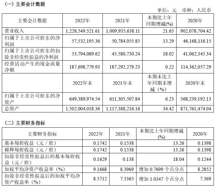 寶光股份2022年度主要財務指標